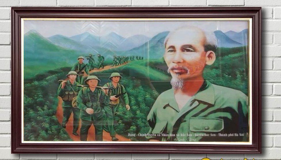 Bức tranh sơn dầu Bác Hồ hành quân chất liệu sơn dầu
